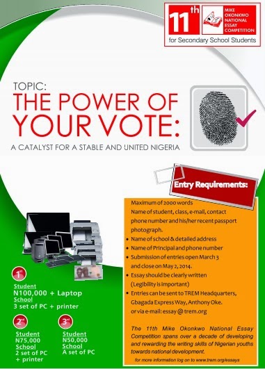 2014 MIKE OKONKWO ESSAY COMPETITION FOR NIGERIAN SECONDARY SCHOOLS